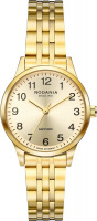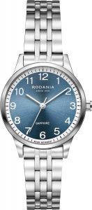 Рифленая заводная головка. Стальной браслет с раскладывающейся застежкой. Имеется мужской вариант модели R22088.