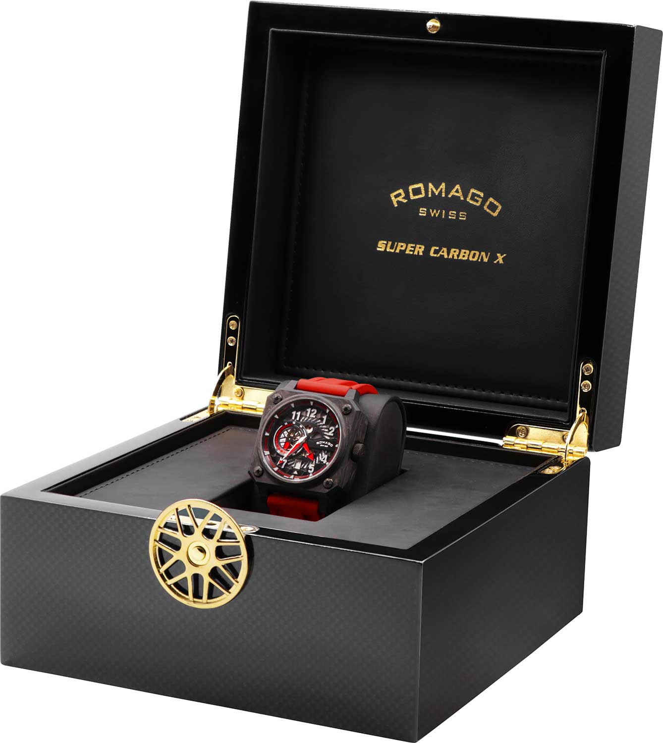 корпус этих часов от ROMAGO позволит чувствовать себя уверенно в любой обстановке.Super Carbon X. Лимитированная серия - 300 экземпляров. Дизайн часов вдохновлен гоночными автомобилями. Запас хода до 44 часов. Индикация секунд вынесена на отдельный циферблат. Карбоновый