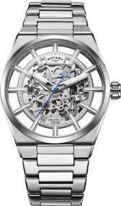 Эти сложные и интригующие часы, оснащенные потрясающим автоматическим механизмом с открытым механизмом, свидетельствуют о мастерстве, с которым создаются часы Rotary семейства Greenwich. Сохраняя основную идею Greenwich, в этих часах использована потрясающая структура ''клетки'', которая создает пространство и свет вокруг механизма с автоподзаводом. Яркий синий цвет секундной стрелки подчеркивает глубину часов, демонстрируя детали скелета механизма. Каждая ''распорка'' в конструкции выполняет функцию индекса и увенчана люминесцентным