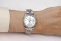 покрытием, которое светится в темноте после непродолжительной зарядки на свету. Рифленая заводная головка. Надежный стальной браслет с раскладывающейся застежкой.