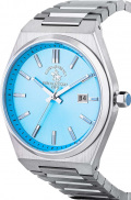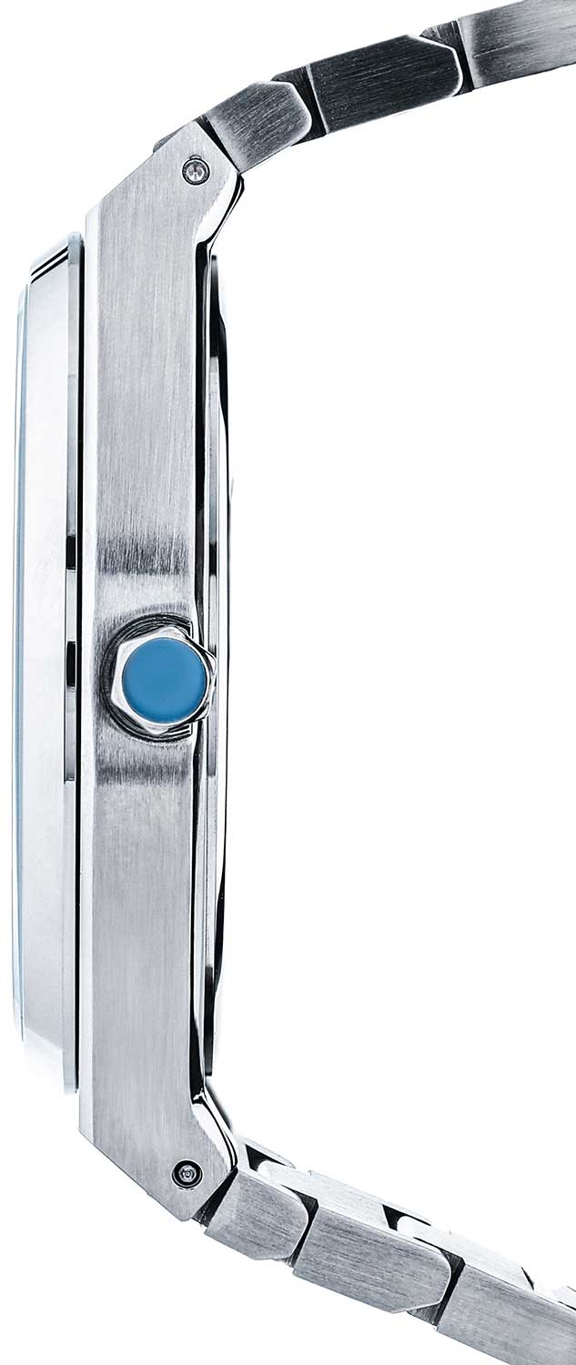 Стрелки и метки с люминесцентным покрытием, которое светится в темноте после непродолжительной зарядки на свету. Рифленая заводная головка с защитой. Стальной браслет с раскладывающейся застежкой.