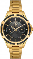 Женские наручные кварцевые часы. Круглый стальной корпус с дизайнерским безелем. Двухуровневый циферблат с вставкой из перламутра выполнен по технологии Sunray (солнечные лучи) и украшен фирменным логотипом. Накладные метки в виде штрихов и точек с кристаллами. Дата и день недели отображаются на отдельных циферблатах. Рифленая заводная головка с защитой. Стальной браслет с матовой и полированной отделкой. Раскладывающаяся застежка.