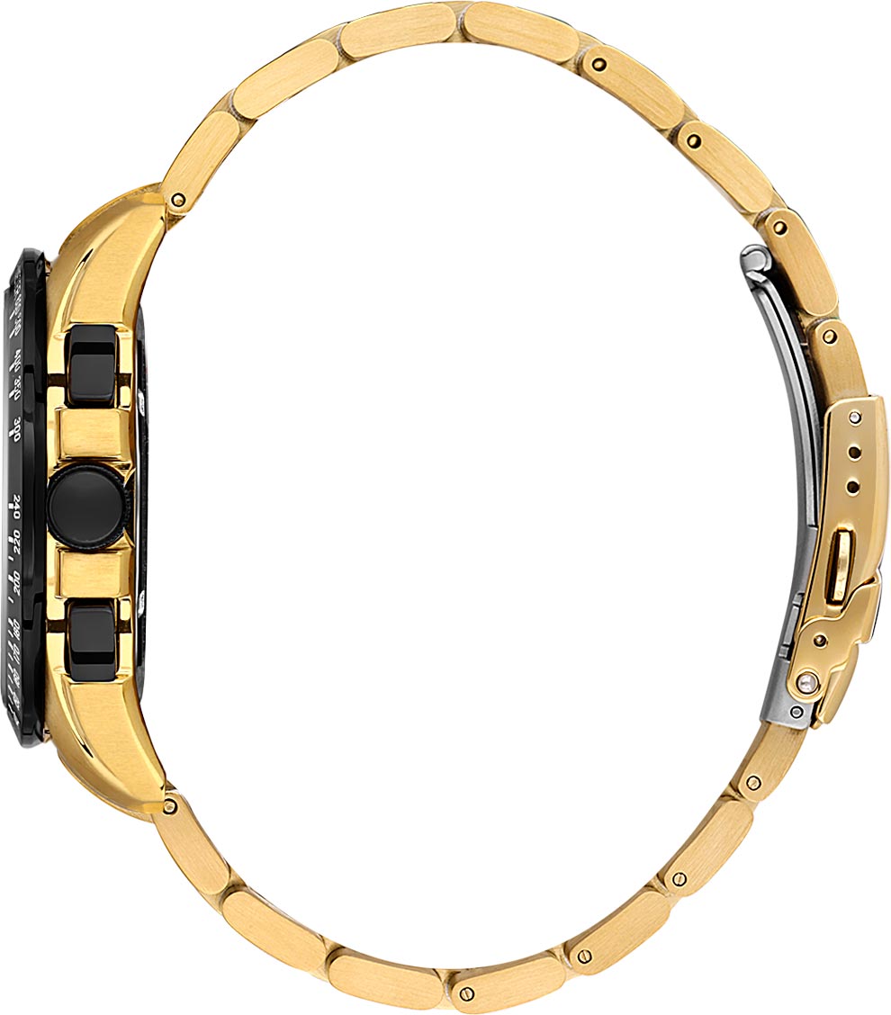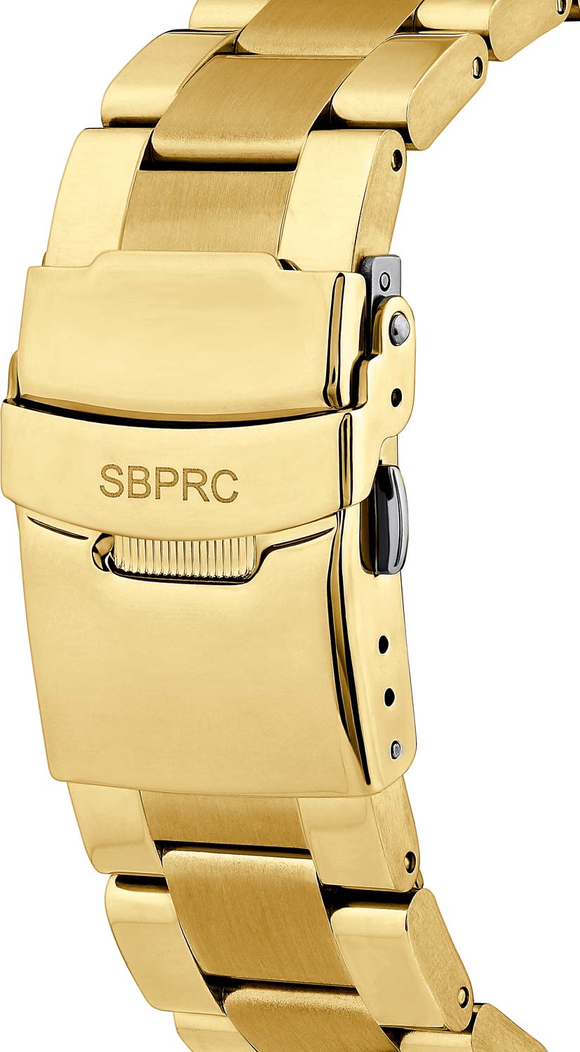 Окошко даты находится между отметками 4 и 5 часов. Стрелки и метки с люминесцентным покрытием, которое светится в темноте после непродолжительной зарядки на свету. Рифленая заводная головка с защитой. Стальной браслет с раскладывающейся застежкой.