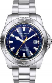 Практичные многофункциональные мужские часы. Круглый стальной корпус с матовой и полированной отделкой. 12-ти и 24-х часовой формат времени, второй часовой пояс и день недели вынесены на отдельные циферблаты. Окошко даты находится между отметками 4 и 5 часов. Фактурный циферблат украшен фирменным логотипом. Накладные метки в виде штрихов. Мечевидные стрелки в стиле Sword. Стрелки и метки с люминесцентным покрытием, которое светится в темноте после непродолжительной зарядки на свету. Заводная головка с защитой. Надежный стальной браслет с матовой и полированной отделкой. Раскладывающаяся застежка.