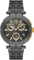 Функциональные мужские часы-хронограф с секундомером и тахиметром. Круглый стальной корпус. Циферблат выполнен по технологии Sunray (солнечные лучи) и украшен фирменным логотипом. Накладные метки в виде штрихов. 12-ти и 24-х часовой формат времени. Окошко даты находится в положении 4 часа. Прямоугольные стрелки в стиле Baton с люминесцентным покрытием, которое светится в темноте после непродолжительной зарядки на свету. Рифленая заводная головка. Надежный стальной браслет с матовой и полированной отделкой. Раскладывающаяся застежка.