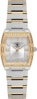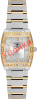 Наручные женские часы в корпусе в форме бочки с матовой и декоративной отделкой. Декоративный безель украшен паве из сверкающих кристаллов. Циферблат с фактурой в виде лучей выполнен по технологии Sunray (солнечные лучи) и украшен фирменным логотипом. Накладные метки в виде штрихов и римских цифр. Стрелки с люминесцентным покрытием, которое светится в темноте после непродолжительной зарядки на свету. Рифленая заводная головка. Стальной браслет с матовой и полированной отделкой. Раскладывающаяся застежка.