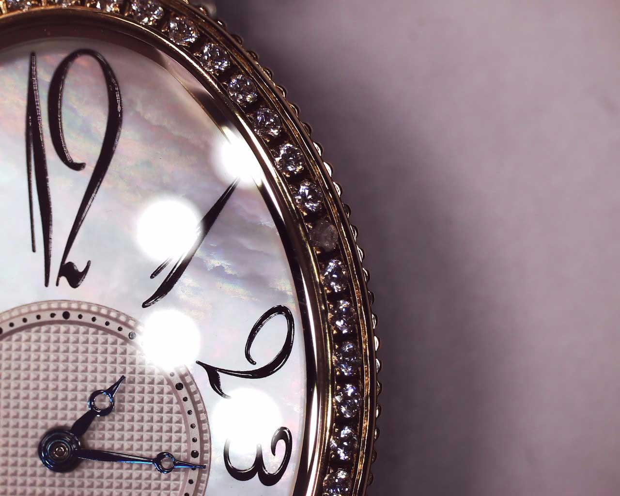 Unique. Женские часы с овальным корпусом. Центральная часть перламутрового циферблата украшена гильоше. Метки в виде арабских цифр. Рифленая заводная головка находится в положении 4 часа. Надежный стальной браслет с раскладывающейся застежкой.