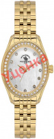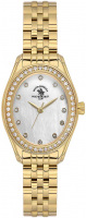 Женские часы. Стальной овальный корпус. Безель украшен паве из сверкающих кристаллов. Циферблат с фирменным логотипом. Накладные метки в виде точек, украшенных кристаллами. Рифленая заводная головка. Раскладывающаяся застежка.