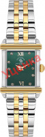 Наручные женские часы в прямоугольном стальном корпусе. Сатинированный циферблат украшен фирменным логотипом. Накладные метки в виде римских цифр и точек, украшенных кристаллами. Клиновидные стрелки в стиле Dauphine. Рифленая заводная головка. Стальной браслет с полированной отделкой. Раскладывающаяся застежка.