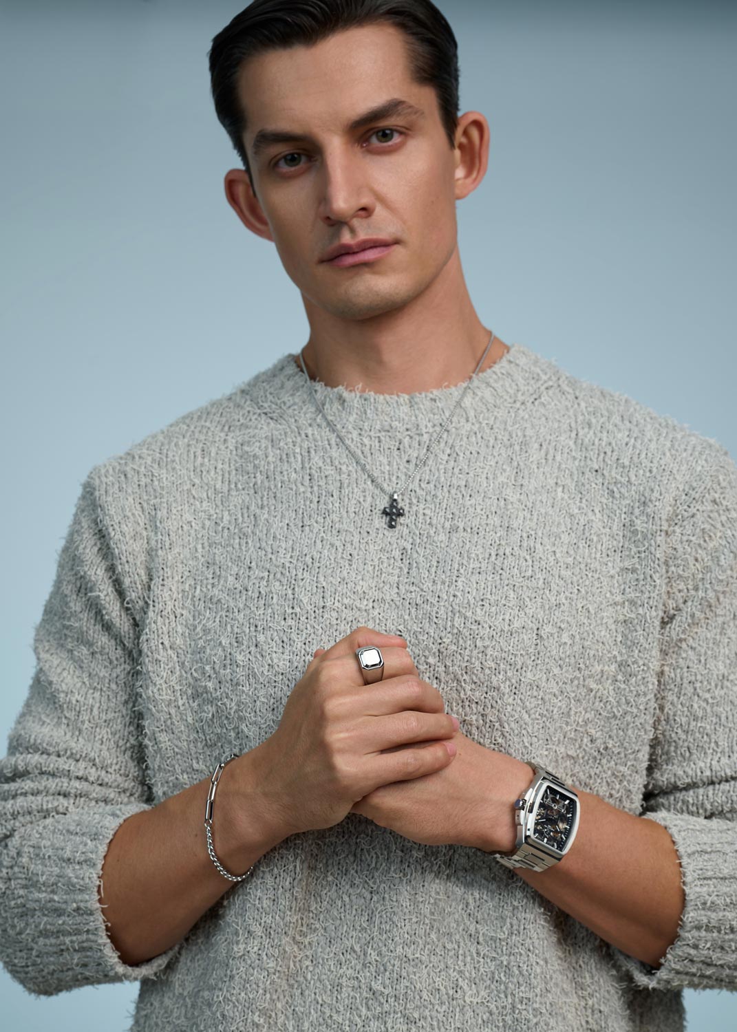 Метки и стрелки с люминесцентным покрытием, которое светится в темноте после непродолжительной зарядки на свету. Рифленая заводная головка с защитой. Стальной браслет с матовой и полированной отделкой. Раскладывающаяся застежка.