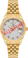 Женские часы с надежным японским механизмом. Циферблат украшен фирменным логотипом. Метки в виде точек, украшенных кристаллами. Окошко даты с увеличительным стеклом. Прямоугольные стрелки в стиле Baton с люминесцентным покрытием, которое светится в темноте после непродолжительной зарядки на свету. Рифленая заводная головка. Надежный стальной браслет с раскладывающейся застежкой.