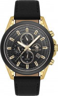 Время в 24-х часовом формате, второй часовой пояс и день недели отображаются на отдельных циферблатах. Стрелки и метки с люминесцентным покрытием, которое светится в темноте после непродолжительной зарядки на свету. Рифленая заводная головка с защитой. Удобный кожаный ремешок с классической застежкой.