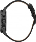 Время в 24-х часовом формате, второй часовой пояс и день недели отображаются на отдельных циферблатах. Стрелки и метки с люминесцентным покрытием, которое светится в темноте после непродолжительной зарядки на свету. Рифленая заводная головка с защитой. Удобный кожаный ремешок с классической застежкой.
