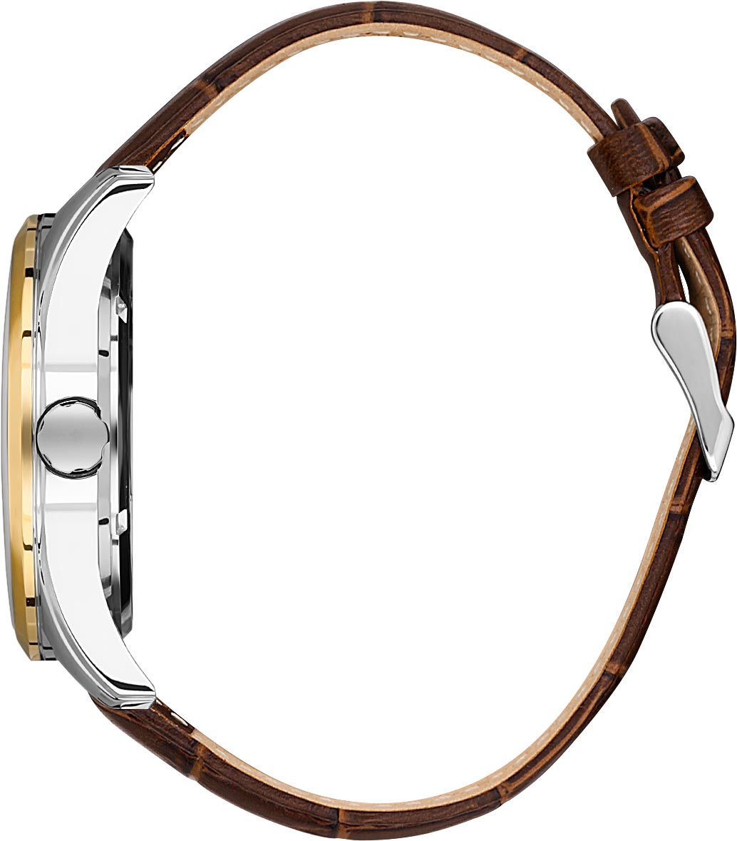 украшена фирменным логотипом, вторая с метками, выполнена по технологии Sunray (солнечные лучи). Накладные метки в виде штрихов и римской цифры. Узкие прямоугольные стрелки в стиле Baton с люминесцентным