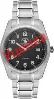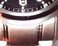Наручные мужские часы. Круглый титановый корпус. Фактурный циферблат украшен фирменным логотипом. Накладные метки в виде арабских цифр. Окошко даты находится в положении 3 часа. Заостренные прямоугольные стрелки в стиле Baton с люминесцентным покрытием, которое светится в темноте после непродолжительной зарядки на свету. Рифленая заводная головка. Титановый браслет с раскладывающейся застежкой.