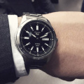 стеклом. Мечевидные стрелки в стиле Sword. Метки в виде штрихов. Двойное окошко даты и дня недели находится в положении 3 часа. Рифленая заводная головка. Завинчивающаяся прозрачная задняя крышка. Надежный стальной браслет с раскладывающейся застежкой.