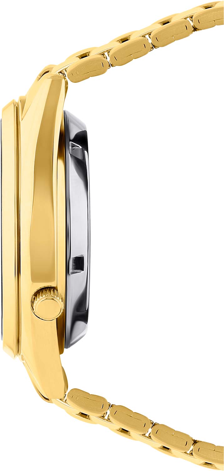 покрытием, которое светится в темноте после непродолжительной зарядки на свету. Двойное окошко даты и дня недели находится в положении 3 часа. Рифленая заводная головка находится в положении 4 часа. Надежный стальной браслет с раскладывающейся застежкой.