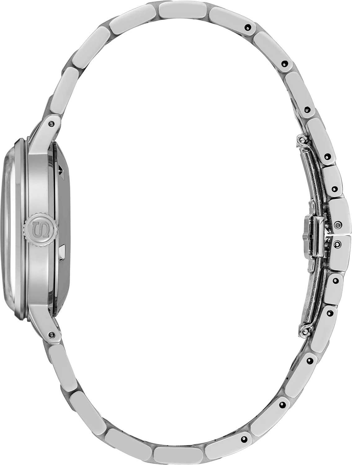 Текстурированный циферблат с метками в виде штрихов. Окошко даты находится в положении 3 часа. Рифленая заводная головка. Завинчивающаяся задняя крышка. Браслет с раскладывающейся застежкой.