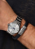 Циферблат с метками в виде штрихов выполнен по технологии Sunray (солнечные лучи). Окошко даты находится в положении 3 часа. Рифленая заводная головка. Завинчивающаяся прозрачная задняя крышка. Браслет с раскладывающейся застежкой.