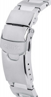 вращается в одном направлении. Завинчивающаяся заводная головка с защитой. Завинчивающаяся задняя крышка. Браслет с раскладывающейся застежкой. Застежка с системой блокировки.