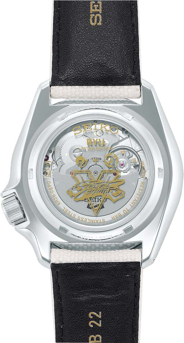 Коллаборация японского гиганта с франшизой игр Street Fighter. Механическая модель в кремовой расцвете вдохновлена персонажем Ryu. Ограниченная серия - 9999 штук. Seiko 5 Sports Street Fighter V Ryu Limited Edition. Лимитированная серия - 9999 экземпляров. Вдохновением для создания модели послужил персонаж Ryu из серии игр Street Fighter. В механизме 24 камня,