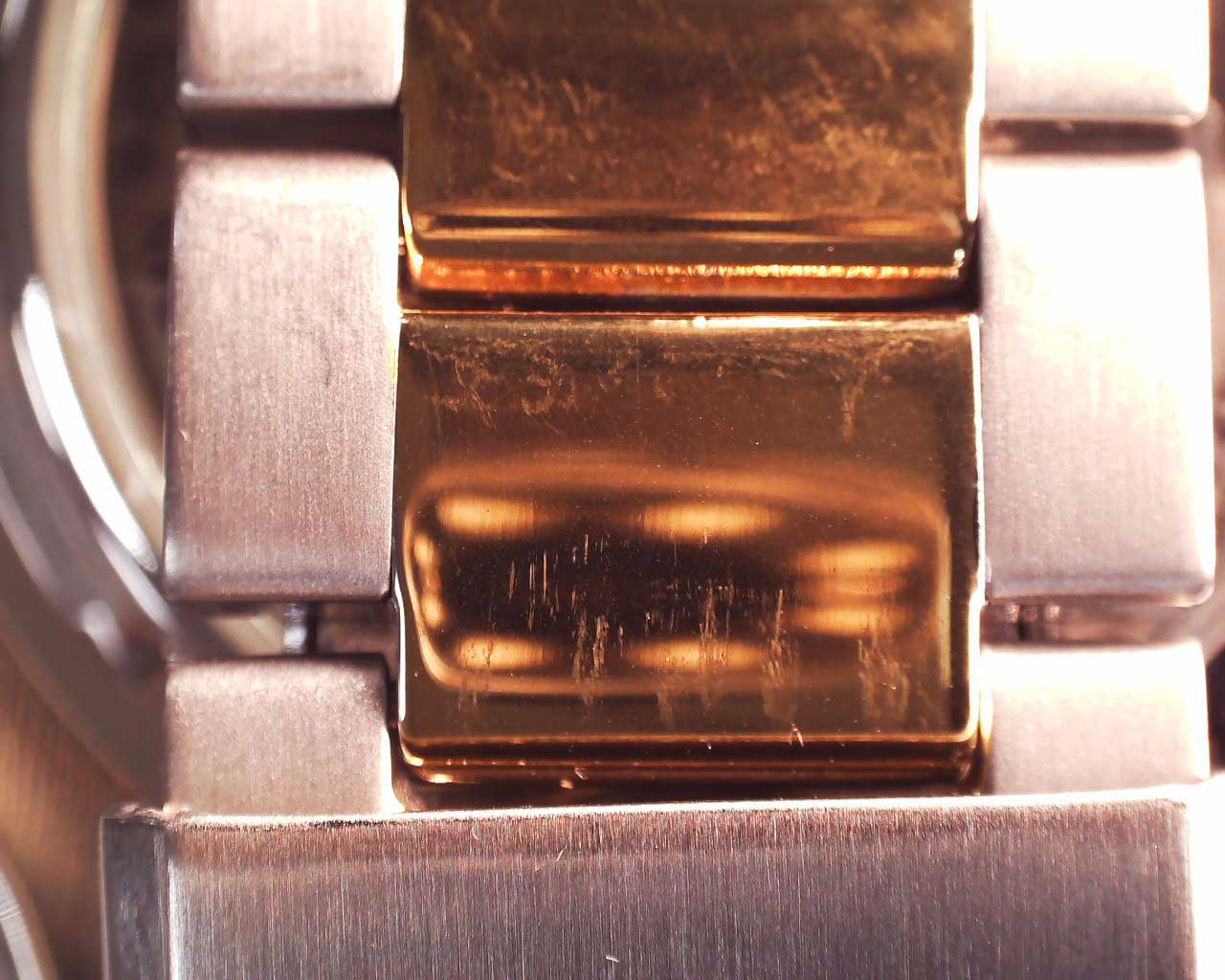 Тончайшее прочнейшее покрытие: в вакууме наносится сверхтвердый нитрид титана, поверх которого сверхтонкий слой золота или оксида хрома (для темного цвета).