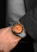 Рифленый вращающийся безель с 24-х часовой шкалой. Заводная головка с защитой находится в положении 4 часов. Завинчивающаяся прозрачная задняя крышка. Браслет с раскладывающейся застежкой. Застежка с системой блокировки.
