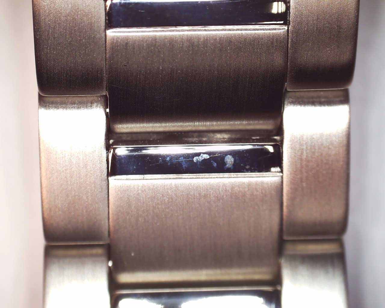 Окошко большой даты находится в положении 6 часов. Рифленая заводная головка. Завинчивающаяся задняя крышка. Батарея рассчитана на 3 года. Браслет с тройной раскладывающейся застежкой.
