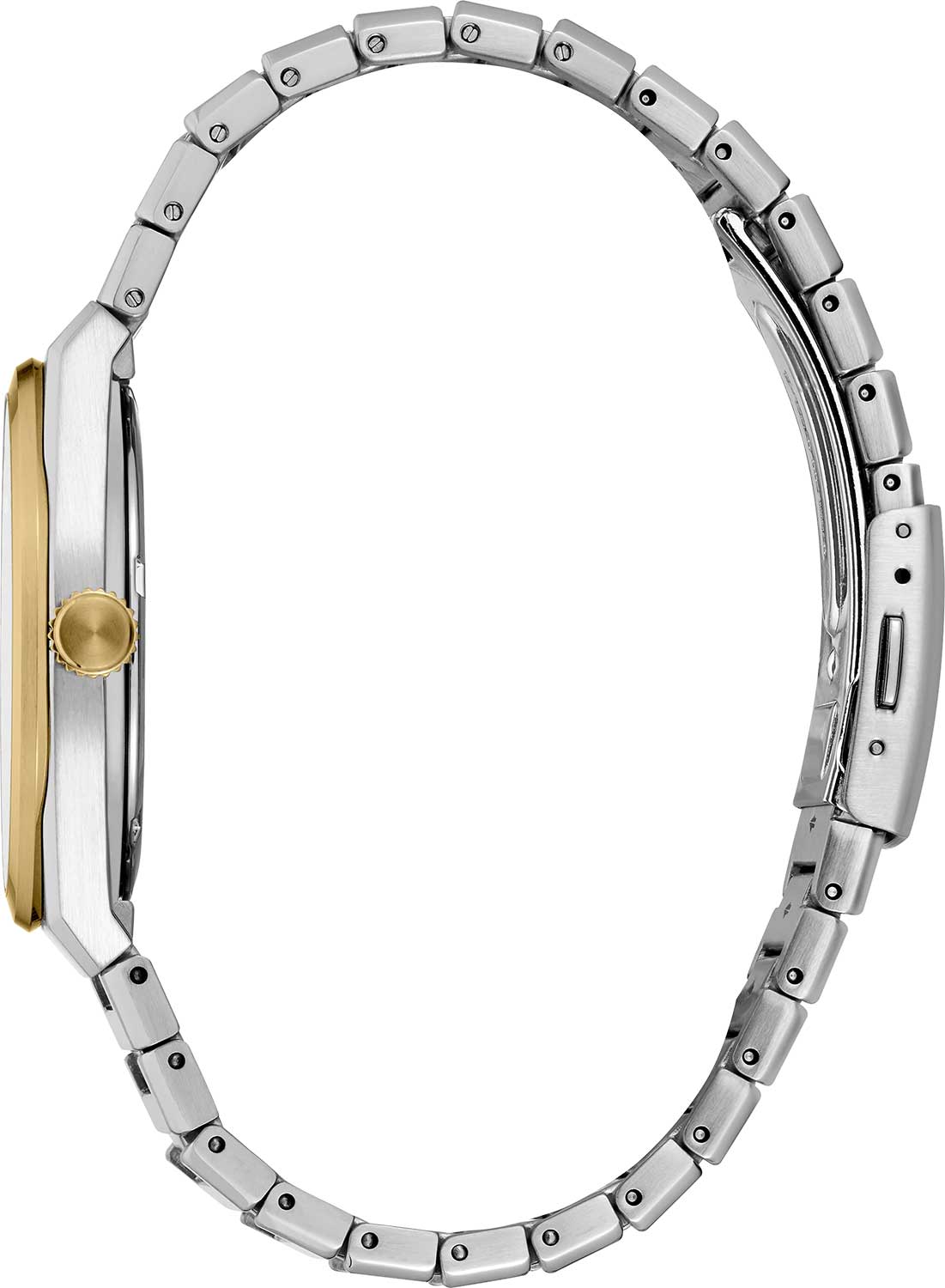 Окошко даты находится в положении 3 часа. Рифленая заводная головка. Завинчивающаяся задняя крышка. Батарея рассчитана на 3 года. Браслет с тройной раскладывающейся застежкой. Имеется женский вариант модели SUR578.