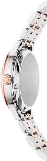 Стрелки с люминесцентным покрытием, которое светится в темноте после непродолжительной зарядки на свету. Рифленая заводная головка с защитой. Завинчивающаяся задняя крышка. Надежный стальной браслет с раскладывающейся застежкой.