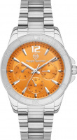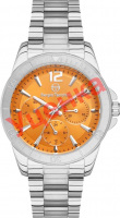 Женские наручные часы с круглым стальным корпусом. 12-ти и 24-х часовой формат времени. Циферблат выполнен по технологии Sunray (солнечные лучи). Метки в виде штрихов и арабской цифры 12. Время в 24-х часовом формате, число и день недели вынесены на отдельные циферблаты. Рифленая заводная головка с защитой. Браслет с раскладывающейся застежкой. Производитель оставляет за собой право вносить изменения во внешний вид часов.