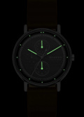 Стрелки и метки с люминесцентным покрытием, которое светится в темноте после непродолжительной зарядки на свету. Кожаный ремешок с классической застежкой и системой быстрой замены.