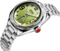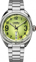 В механизме 21 камень. Запас хода до 36 часов. Противоударное устройство оси баланса. Циферблат с метками в виде арабских цифр защищен прочным сапфировым стеклом. Окошко даты и дня недели находится в положении 6 часов.