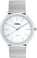 Лаконичные унисекс часы в круглом корпусе. Циферблат с метками в виде штрихов. Миланский браслет.