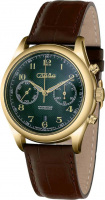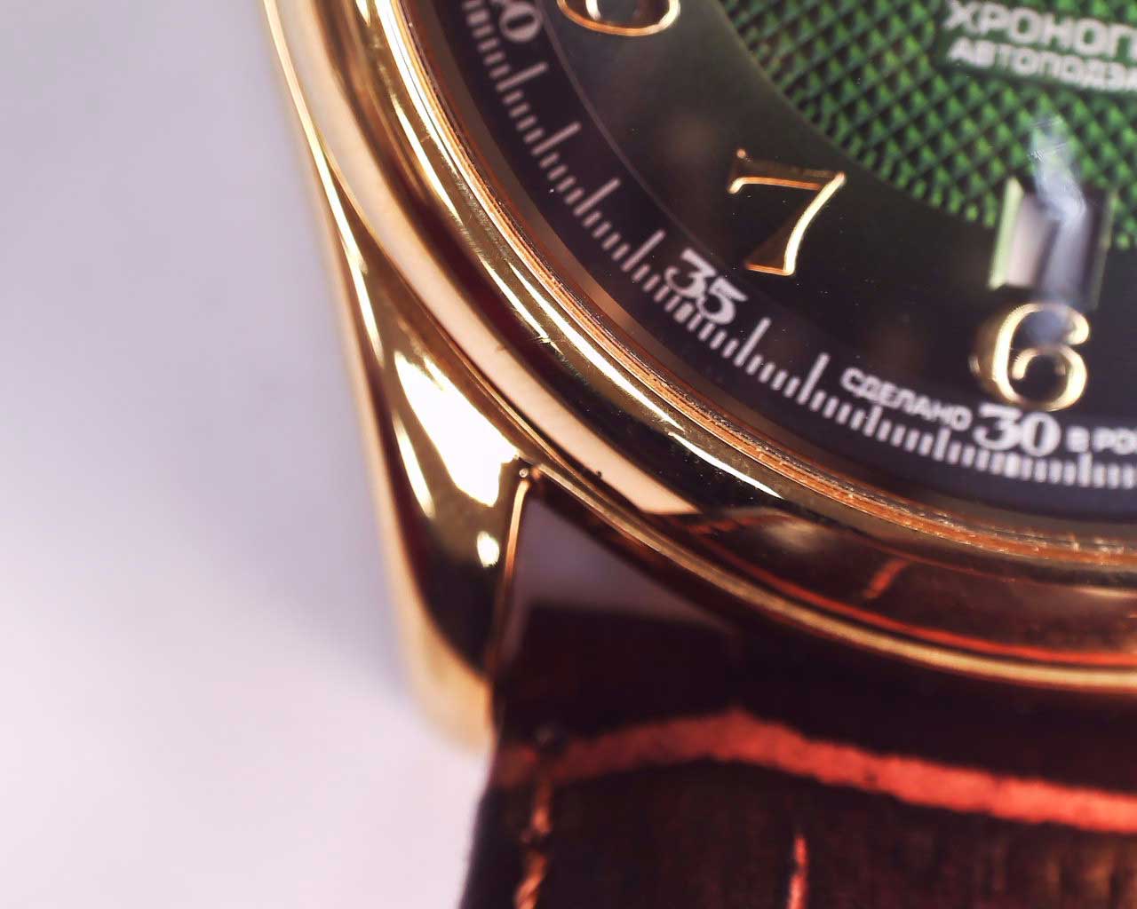 Мужские механические часы-хронограф Премьер с секундомером и автоподзаводом. Циферблат украшен декоративными узорами и фирменным логотипом ''Слава''. Окошко даты в положении 6 часов. Стрелки с нанесенным люминесцентным составом, который светится в темноте. Рифленая заводная головка. Удобный кожаный ремешок с классической застежкой.