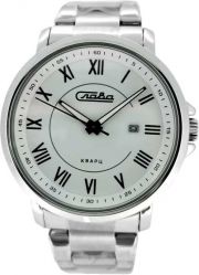 Традиция. Мужские часы с круглым корпусом. Метки в виде римских цифр. Окошко даты находится в положении 3 часа. Заводная головка с защитой. Браслет с раскладывающейся застежкой.