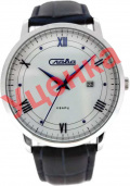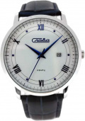 Традиция. Мужские часы с круглым корпусом. Метки в виде точек и римских цифр. Окошко даты находится в положении 3 часа. Ремешок с классической застежкой.
