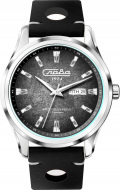 Циферблат с меткам в виде штрихов. Окошко даты и дня недели находится в положении 3 часа. Рифленая заводная головка. Ремешок с классической застежкой.