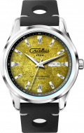 Циферблат с меткам в виде штрихов. Окошко даты и дня недели находится в положении 3 часа. Рифленая заводная головка. Ремешок с классической застежкой.