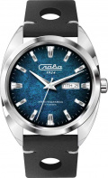 Циферблат с меткам в виде штрихов. Окошко даты и дня недели находится в положении 3 часа. Рифленая заводная головка. Ремешок с классической застежкой.