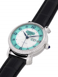Безель украшен паве из цирконов. Заводная головка украшена камнем в форме кабошона. Прозрачная задняя крышка крепится на 4-х винтах. Ремешок из кожи крокодила с раскладывающейся застежкой и системой быстрой замены.