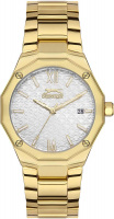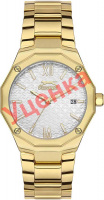 Женские кварцевые часы. Корпус из суперметалла, который прочнее других сплавов. Циферблат с декоративным рисунком украшен логотипом бренда. Метки в виде штрихов и римских цифр VI и XII. Окошко даты находится в положении 3 часа. Шестигранная заводная головка. Браслет с раскладывающейся застежкой.