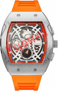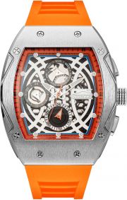 Мужские кварцевые часы с бочкообразным корпусом из суперметалла. Сатинированный безель. Циферблат с логотипом бренда и метками в виде точек защищен минеральным стеклом. По краю циферблата нанесена минутная шкала. Метки и стрелки с люминесцентным покрытием, которое светится в темноте после непродолжительной зарядки на свету. Дата, день недели, 12-ти и 24-х часовой формат времени вынесены на отдельные циферблаты. Удобный силиконовый ремешок с классической застежкой.