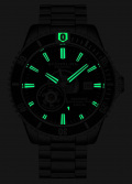 Метки и стрелки с люминесцентным покрытием, которое светится в темноте после непродолжительной зарядки на свету. На задней крышке имеется прозрачное окошко, через которое можно наблюдать работу механизма часов. Рифленая заводная головка с защитой. Надежный стальной браслет с раскладывающейся застежкой.