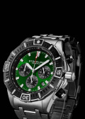 Окошко даты находится между отметками 4 и 5 часов. Завинчивающаяся задняя крышка. Рифленая заводная головка с защитой. Надежный стальной браслет с раскладывающейся застежкой.