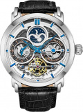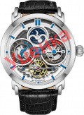 Luciano. Скелетонизированные часы. В механизме 22 камня. Запас хода 36 часов. Второй часовой пояс. Индикатор день/ночь. Накладные метки в виде штрихов. Завинчивающаяся прозрачная задняя крышка. Рифленая заводная головка украшена логотипом Stuhrling. Ремешок с классической застежкой.