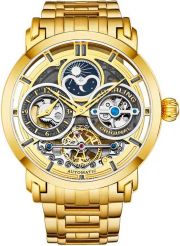 Luciano. Скелетонизированные часы. Второй часовой пояс. В механизме 22 камня. Запас хода 36 часов. Индикатор день/ночь. Накладные индексы. Завинчивающаяся задняя крышка со стеклом Krysterna. Заводная головка украшена логотипом Stuhrling. Браслет с раскладывающейся застежкой.