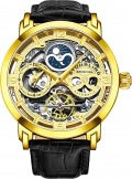 Anatol. Скелетонизированные часы. Второй часовой пояс. Индикатор день/ночь. Метки в виде штрихов. Завинчивающаяся задняя крышка со стеклом Krysterna. Рифленая заводная головка. Ремешок с классической застежкой.