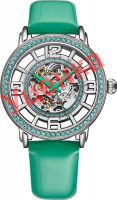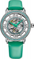 Скелетонизированные женские механические часы с автоподзаводом Winchester. Стальной круглый корпус. Безель украшен кристальным паве. Ослепительные кристаллы, украшающие циферблат, эффектно обрамляют открытый механизм. Накладные метки в виде штрихов и арабских цифр в положениях 3,6,9 и 12 часов. Мечевидные стрелки в стиле Sword. Завинчивающаяся задняя крышка со стеклом Krysterna. Кожаный ремешок с классической застежкой.