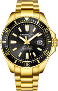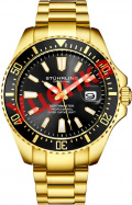 Aquadiver Depthmaster Diver. Водонепроницаемые мужские часы. Круглый стальной корпус с минеральным стеклом. Рифленый вращающийся безель с минутной шкалой. Циферблат выполнен по технологии Sunray (солнечные лучи). Заостренные прямоугольные стрелки в стиле Baton. Метки в виде штрихов. Метки и стрелки с люминесцентным покрытием, которое светится в темноте после непродолжительной зарядки на свету. Окошко даты с увеличительным стеклом находится в положении 3 часа. Рифленая заводная головка с защитой. Завинчивающаяся задняя крышка. Надежный стальной браслет с раскладывающейся застежкой. Застежка с системой блокировки.